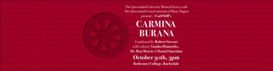It's a big... wait, this is the original, not the ad.  Carmina Burana is one of those big classic choral works that absolutely deserves the hype. It's a bit of a QUMS tradition to perform it once a decade for this reason, and we're delighted to partner with the Queensland Conservatorium to present it this year!  We'll be accompanied by Mr Christian Gante and Ms Kylie Los each on piano, as well as a selection of excellent percussionists.  We'll be performing at Redeemer Lutheran College, in the Kleinschmidt Centre Auditorium, starting at 3pm. Please refer to the map below for parking information.